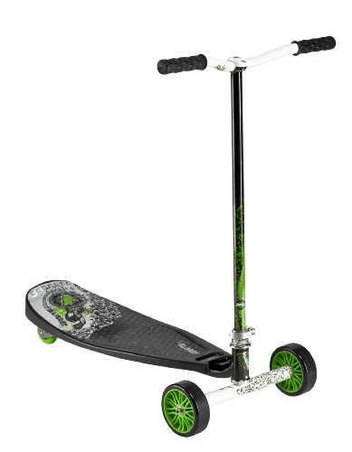 The Slither drift scooter is the latest invention from Pulse, the leaders in outdoor rolling fun. This one-of-a-kind, three-wheeled scooter features two large front wheels offset with a single rear wheel housed in a pivot-mounted swivel truck. This rudder-like rear wheel gives you the freedom to drift in and out of turns, zip around corners, execute lightning-quick 180° turns, and pull off other tricks and maneuvers that are simply not possible on any other scooter. Adjust the tension to the rear wheel to meet any skill level. The Slither is emblazoned with vibrant new graphics.